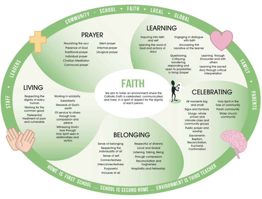 Catholic Social Teachings guide and lead the faith development in our school. We work for the common good of all, ensuring respect for the dignity of each person and working for subsidiarity and solidarity for all.